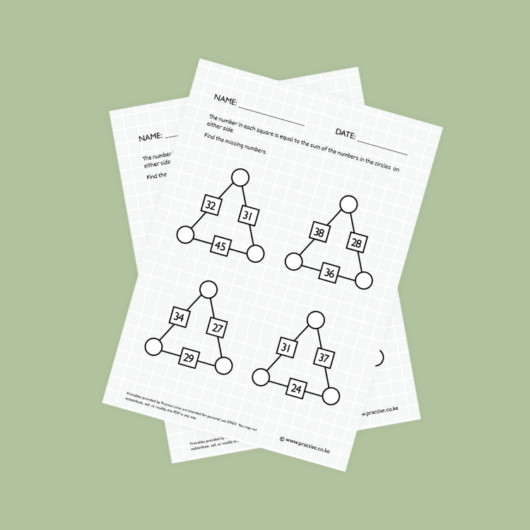 Part Two of the Complex Arithmagons series brings fresh, slightly more challenging puzzles that still rely on addition only to uncover missing numbers. Each square holds the sum of the two numbers in the neighbouring circles, and learners must use reasoning and number sense to solve.