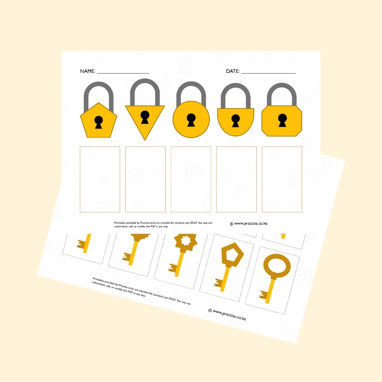 This printable helps children develop shape recognition, fine motor skills, and critical thinking through a fun, hands-on activity. By matching each uniquely shaped key to its corresponding padlock, kids stay engaged while learning important early math and visual discrimination skills.